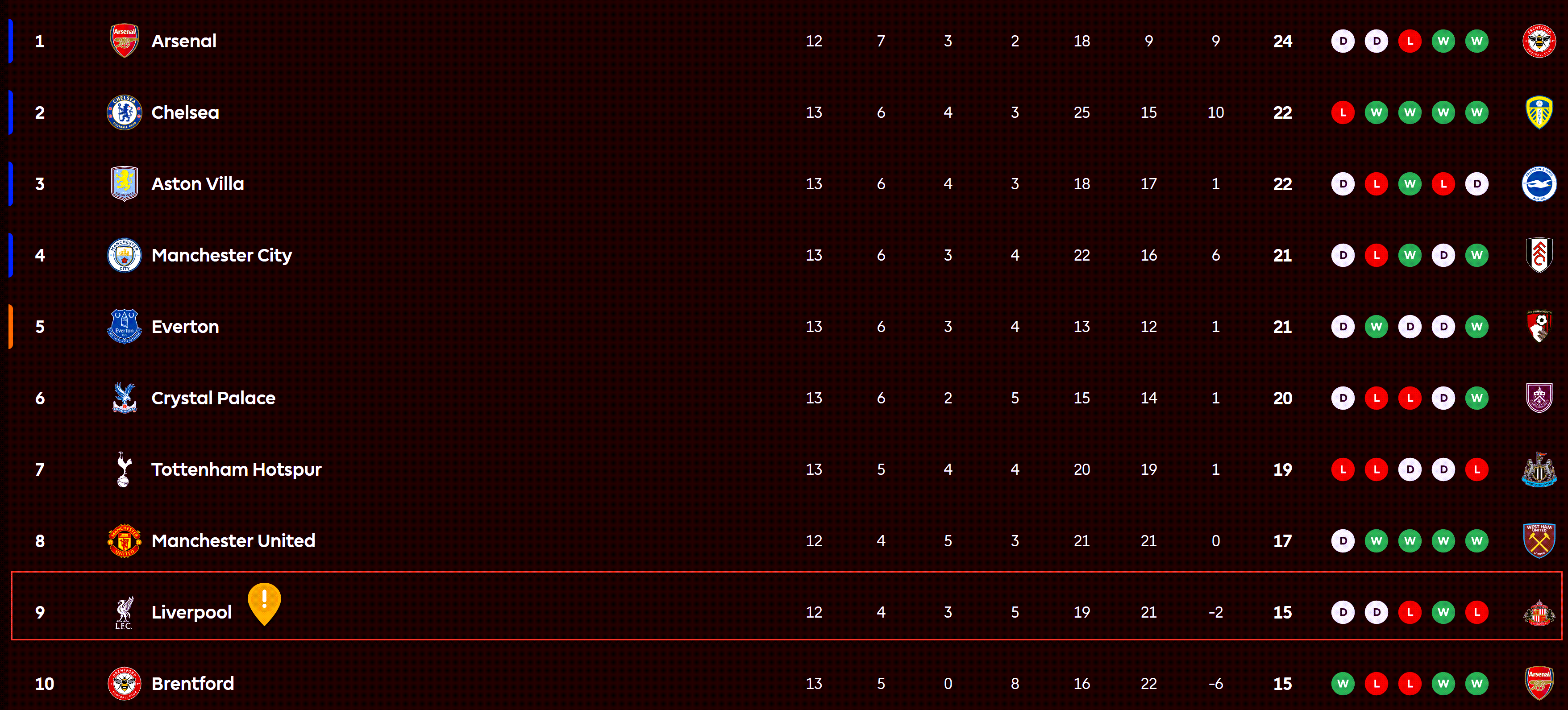 Forma Liverpoolu na wyjazdach w przekroju sezonu i w przełożeniu na punkty jest fatalna. Jesteśmy zaledwie dziewiątą siłą ligi, na równi z Brentford, z 15 punktami na 12 spotkań. Średnio tracimy 1,4 gole na mecz wyjazdowy. Defensywa jest notorycznym problemem.