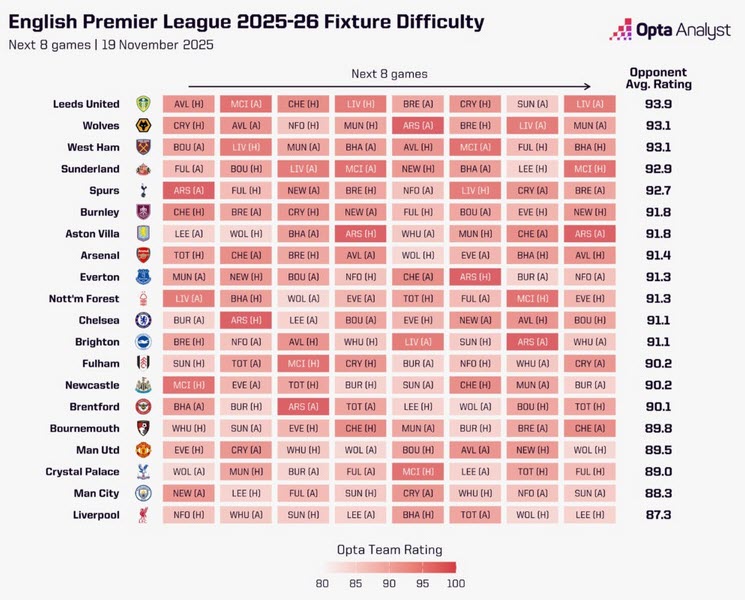 Czy jesteśmy optymistycznie nastawieni do końcówki listopada i okresu grudniowego? Do końca roku 2025 mamy 21 pkt do zdobycia w lidze. Zagramy 4 mecze u siebie (Forest, Sunderland, Brighton i Wolves), oraz 3 na wyjeździe (West Ham, Leeds i Spurs).