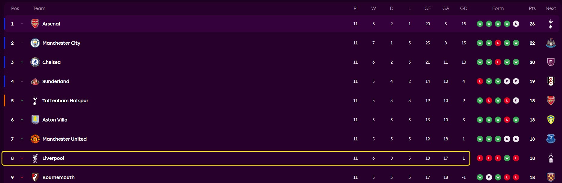 Spoglądamy w górę tabeli z 8. pozycji i zastanawiamy się jakby to było, gdyby od 7. kolejki wszystko inaczej się potoczyło. Oraz co będzie, jeśli teraz seriami Liverpool punktów zdobywać nie będzie?