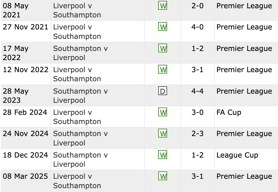 W ostatnich 9 meczach z Soton wypracowaliśmy 8 wygranych i 1 remis. Ostatni raz przegraliśmy z nimi na St. Mary’s Stadium 0-1 w styczniu 2021 w Premier League.