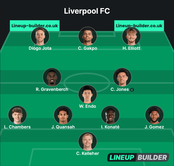 Curtis Jones jest gotowy do powrotu po odbyciu drugiego z trzech meczów kary domowej w miniony weekend i pomocnik może zastąpić Dominika Szoboszlai w pierwszej jedenastce, podczas gdy Wataru Endo będzie rywalizował z Alexisem Mac Allisterem o rozpoczęcie gry w roli głębokiego pomocnika.
