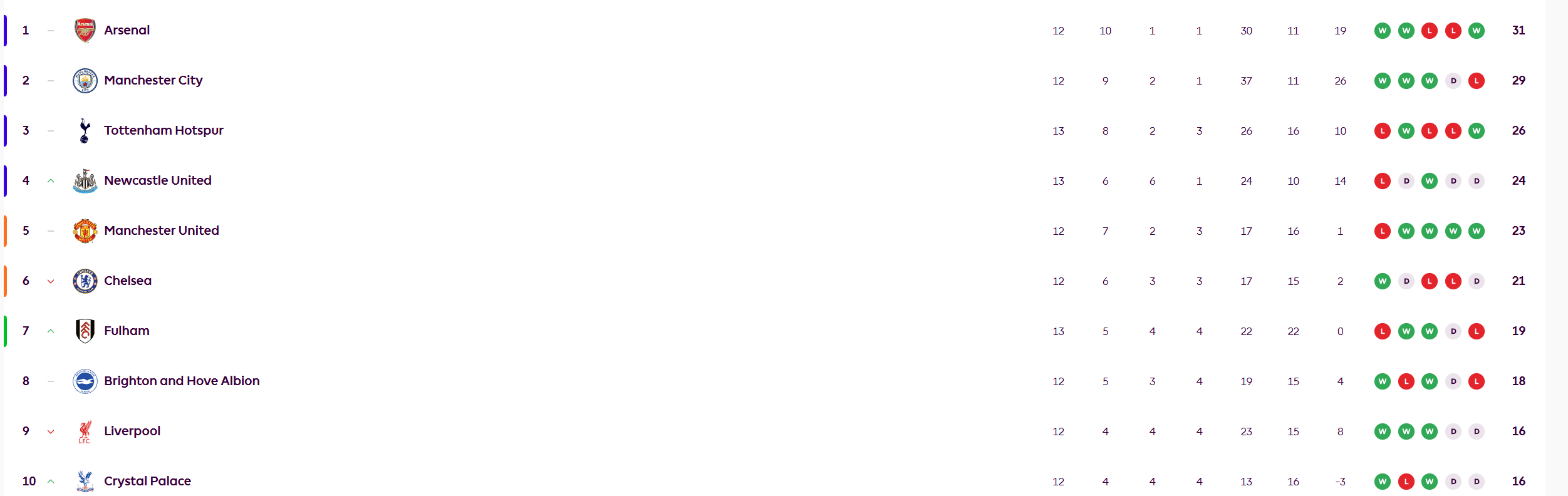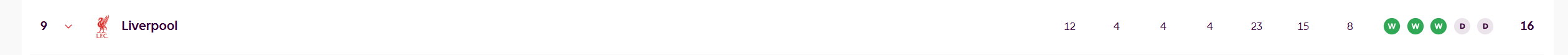 Liverpool zajmuje po meczach wtorkowych 9 miejsce z dorobkiem 9 pkt. 3 zwycięstwa oraz przegrana z Galatasaray na wyjeździe.