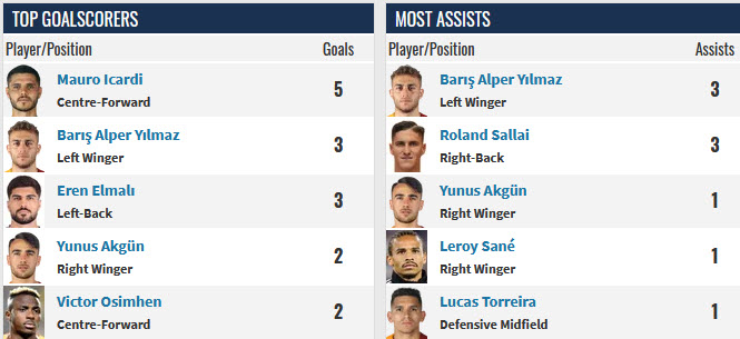 Obecnie, po 7. kolejkach ligowych, Galatasaray przewodzi w Süper Lig z 21 pkt. Wygrali wszystkie 7 spotkań i mają już 6 pkt przewagi nad drugim Fenerbahçe. Bilans bramek: 19-2. Wygląda na to, że mają zamiar obronić tytuł, podobnie jak LFC.
