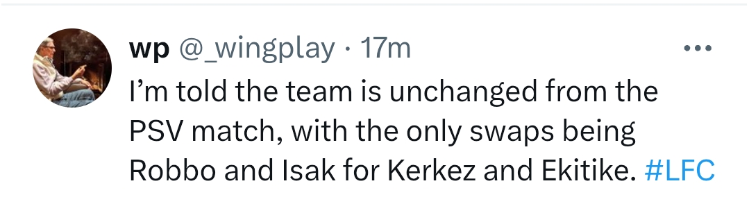 Moim zdaniem trzeba jak najwięcej ogrywać piłkarzy których kupiliśmy w tym okienku żeby się zgrywali. No tak jest argument, że trzeba zasłużyć na 11. Zgadzam się, ale kompromisów jest coraz mniej, konkurencja coraz słabsza więc ten kerkez który wam się mega nie podoba czy Isak muszą grać, grać, grać 90 minut na mecz. Tak samo wirtz jak wróci lub frimpong. No i ekitike.