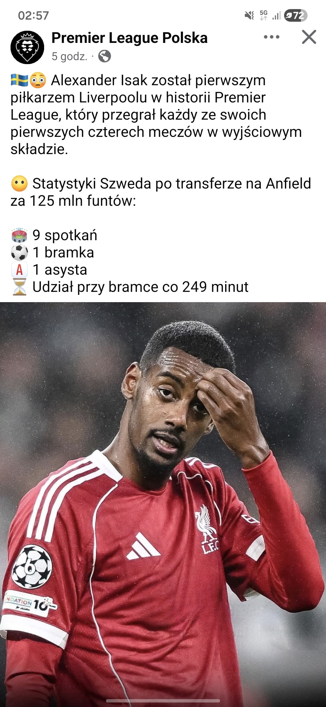 Tylko ten Isak to porusza się jak wóz z węglem, to nawet gdyby chcieli, to jak mają mu tę piłkę dostarczyć? No tap iny to w tym klubie nie doświadczy przy Salahu, który zamyka oczy i wali w bramkarza jak jest sam na sam XD