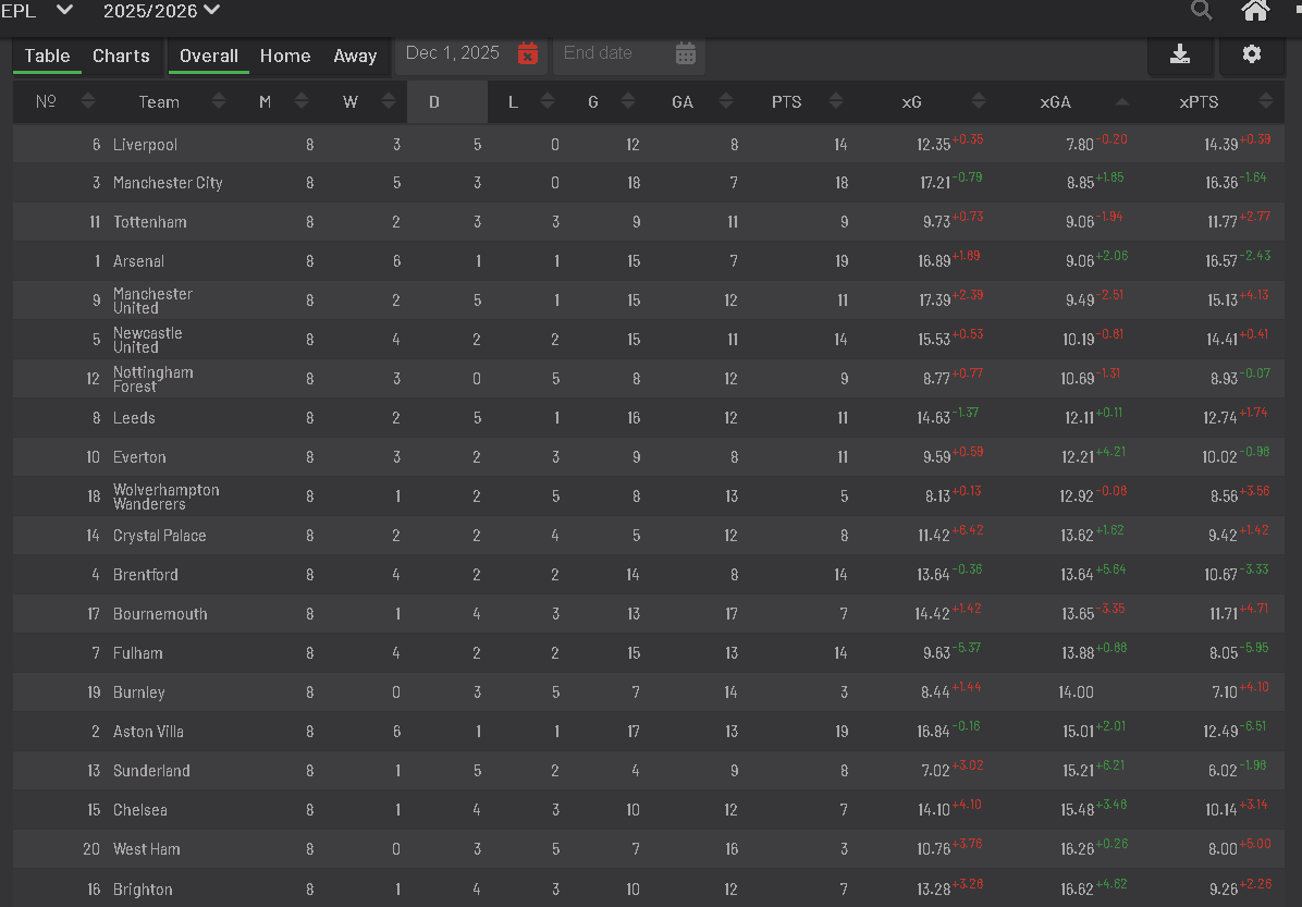 Slot powoli zaczyna odbudowywać defensywę. Nie wiem, czy macie tego świadomość, ale od 1 grudnia mamy najmniejszy współczynnik oczekiwanych goli straconych w lidze. Wyprzedzmy w tej statystyce nawet Arsenal. Trzeba tylko dorzucić Slotowi dobrego specjalistę od stałych fragmentów gry i defensywnie będziemy na prawę ładnie wyglądać. Umiejętności ustawiania defensywy przez Xabiego nie są moim zdaniem takie oczywiste, patrząc na poczynania Realu w tym sezonie. A wiadomo, że tam jest i tak dużo prostsza liga, więc w ogóle porównując statystyki Slota i Xabiego z tego sezonu, nie można tego robić bezrefleksyjnie tak jak niektózy na tym forum