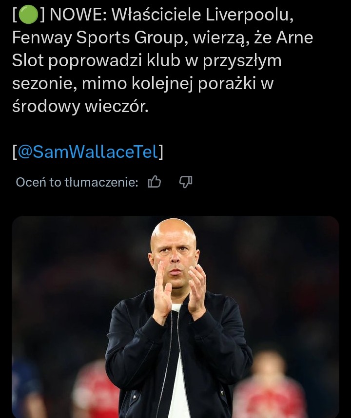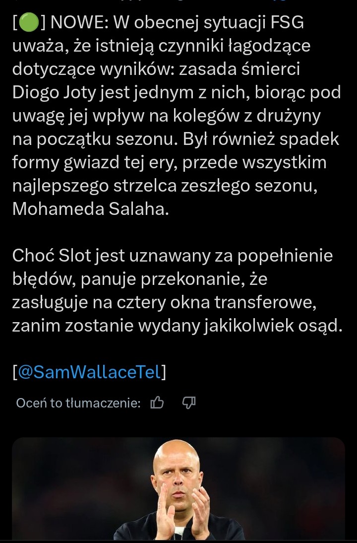 Slota w oczach FSG może obronić mistrzostwo i czynniki łagodzące w postaci śmierci Joty, zakłóconego okresu przygotowawczego, odejścia ze sztabu szkoleniowego, liczne transfery i zmiany kadrowe związane z koniecznością wprowadzenia nowych zawodników do drużyny, kontuzje i zgaśnięcie Salaha. Mam nadzieje, że nie obroni, ale próbuje spojrzeć na to od strony bardzo konserwatywnego i ostrożnego podejścia do takich kwestii przez FSG.