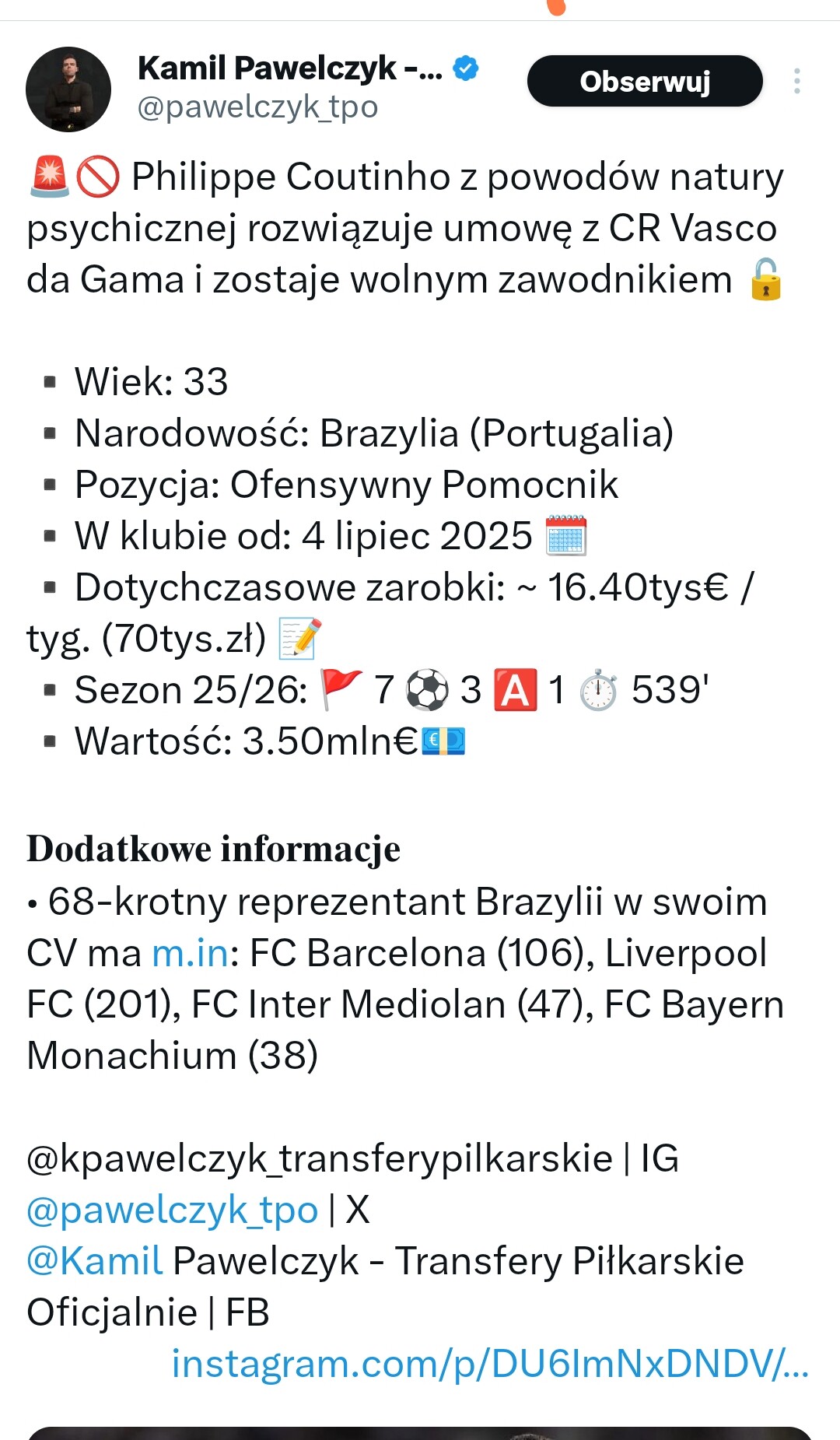 Dziś w pierwszym składzie, tym samym przechodzi do historii. Jest też drugim najmłodszym strzelcem w PL, a także drugim najstarszym. Wciąż dzierży rekord asyst LM. Jeden z najważniejszych piłkarzy ery Kloppa. Jeden z najlepszych darmowych transferów w historii. Wzór profesjonalisty na boisku i po za nim.