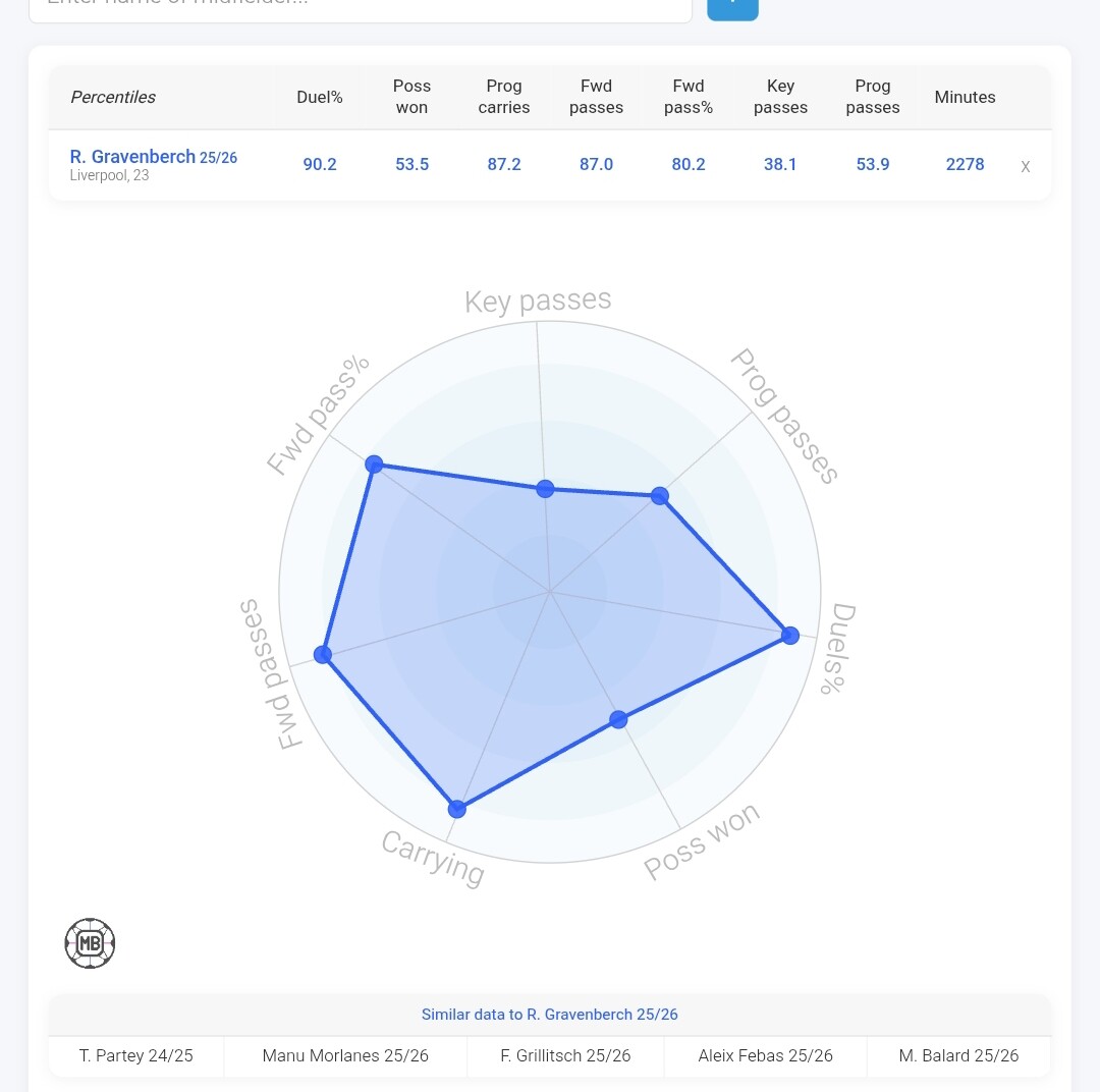 Gravenberch najlepiej grał przez kilka miesięcy, na początku poprzedniego sezonu, dzisiaj na 6 fizycznie odstaje w pojedynkach, wtedy ilość odbiorów była na na prawdę niezłym poziomie w połączeniu z techniką.