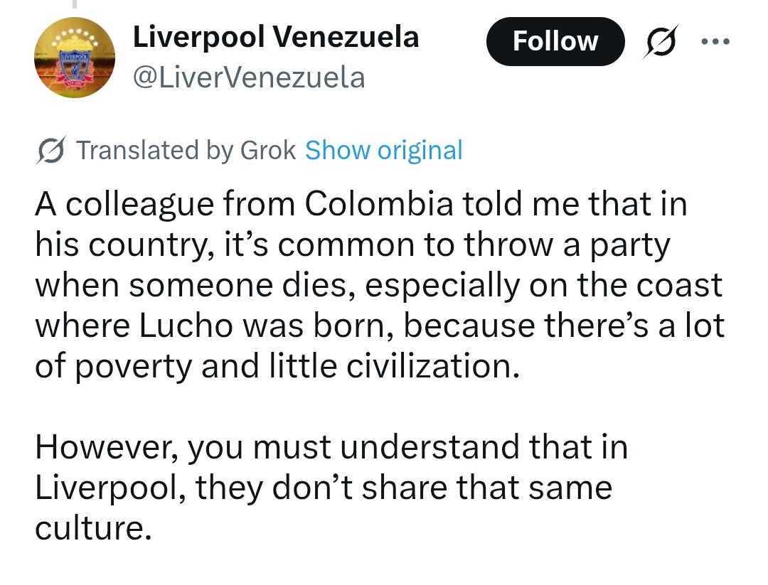Jeżeli do prawda to w mediach go żegna, a wieczorem w dniu pogrzebu już się bawi, okropne zachowanie typowe dla niektórych latynosów, nie dziwię się wcale reakcji kibiców. Teraz wolałbym żeby sprzedali bardziej Diaza niż Nuneza. Urugwajczyk ma kontrakt do 2028 więc jeszcze jeden sezon mógłby zostać jako rezerwowy napastnik. A Diaz niech ucieka do Arabów za dobre pieniądze i będzie wtedy na nowego napastnika. Gakpo i Wirtz przykryją lewą stronę w nowym sezonie.