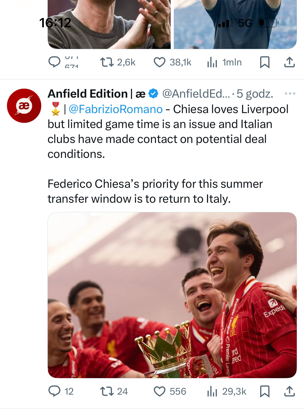 Raczej wiadomo, że Nunez odchodzi, ja bym wolał sprzedać Jotę, na którego Arne stawiał przez dużą część sezonu, a z którego pożytku było co kot napłakał niż oddawać Chiesę. Niech Włoch przepracuje cały okres przygotowawczy z drużyną i pokaże na co go stać.