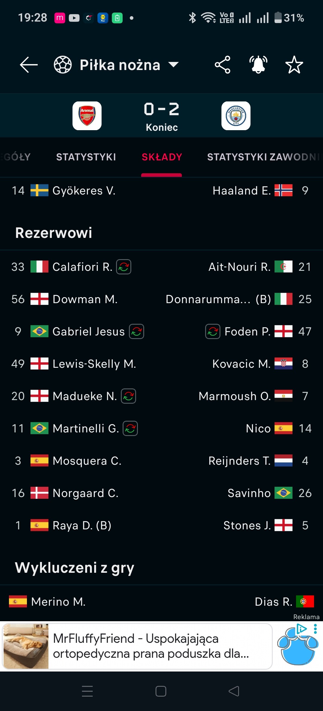 Tak wygląda ławka w meczu arsenal-city. Obie drużyny nie ogly skorzystać z trzech zawodników. Niestety to jeet przepaść i rqczej tłumaczenie ze nie mozna mieć dwóch opcji na pozycji w tej sytacji nie działa. Piłkarze którzy sa tam na ławkach u nas mogliby grać w pierwszej jednastce szczególnie z city.