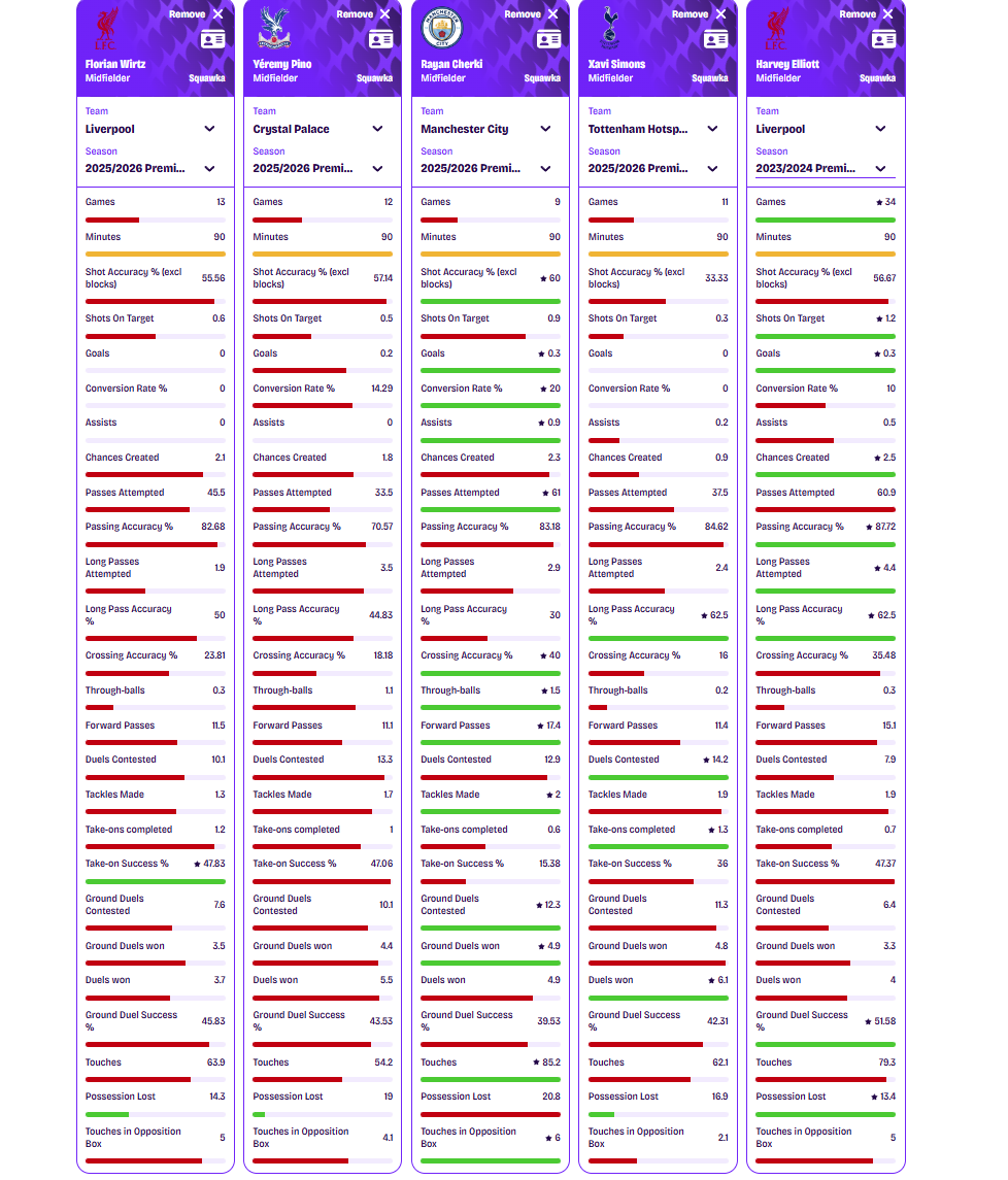 macie Wirtzomaniacy porównanie do innych zawodników o podobnym profilu, wiele tańszych, ale wiek ten sam lub rok róznicy i sciagnietych z innych lig, grajacych na tych samych pozycjach.