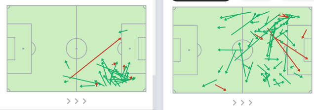 Ciekawe, która heatmapa pokazuje którego zawodnika. Który z nich zaliczył 16 strat na 48 kontaktów, a który na 80 i jakie ryzyko było tych podań.