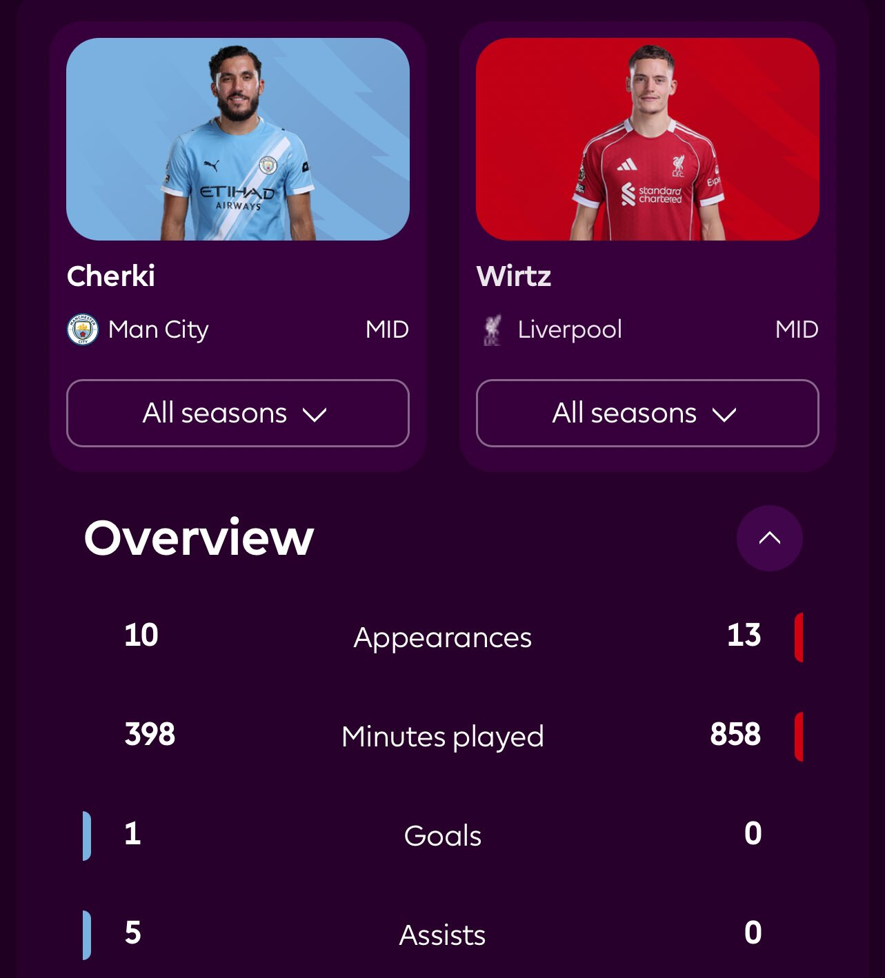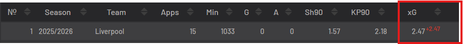 Każdy ofensywny piłkarz Liverpoolu, łącznie z Chiesą który gra ogony po 3 minuty ma lepsze liczby. Najlepsze ma Ekitike mimo iż przed sezonem ludzie pisali że będzie flopem.