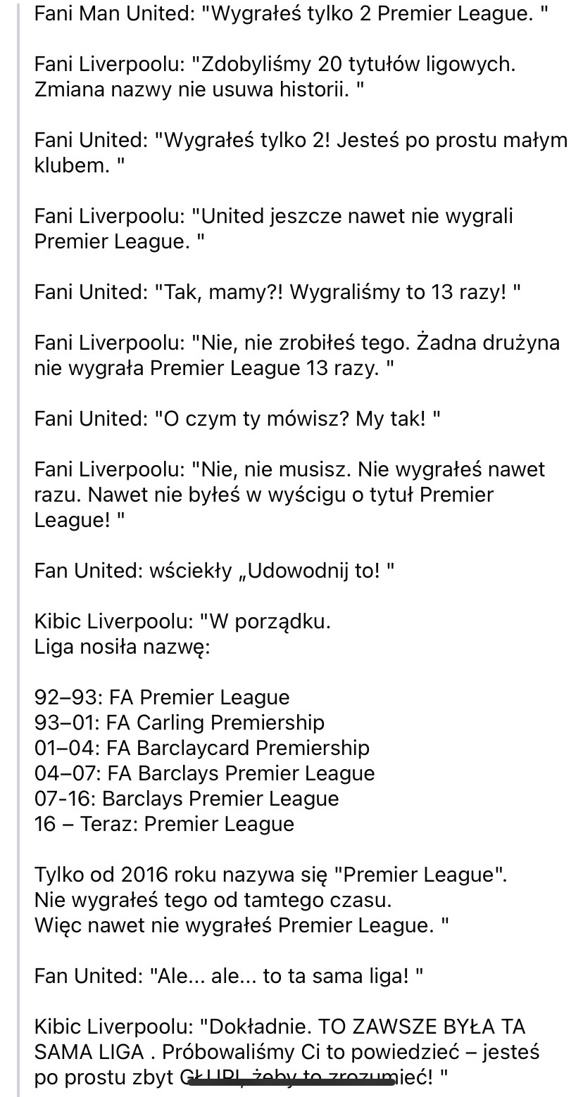 Co to za bzdury np mniej tytułów PL niż Blackburn bądź przesada z tym nigdy nie wygrałem krajowego triple skoro w całej historii dokonało tego tylko City a nawet my czy “memnited” nie ![]()