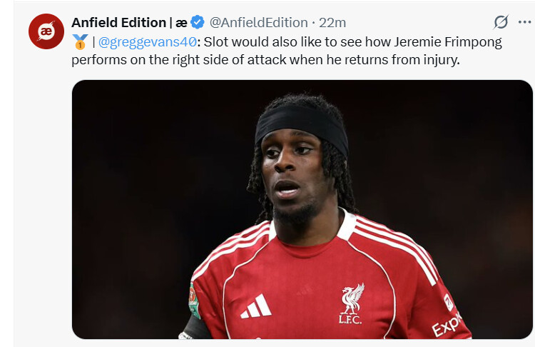 Czy on jest aż tak słaby jako prawy obrońca? Pomijając kiepskie warunki fizyczne z dotychczasowych występów, typowo na test oka, nie opierając się na statystykach, w moim mniemaniu nie wyglądał, aż tak źle. Oczywiście mamy małą próbkę, ale ewentualne błędy może korygować szybkością. Początek miał na pewno lepszy od Kerkeza. A skoro Salah wyjeżdża na Puchar Szamana i Slot będzie ustawiał zespół tak jak z WHU, to kto będzie tam pasował lepiej od Holendra? Szobo będzie bliżej środka, gdzie zawsze ciągnie tez Bradleya, a Frimpong bedzie dawał niezbędną szerokość. Niech nasmaruje się Amolem i na boisko.