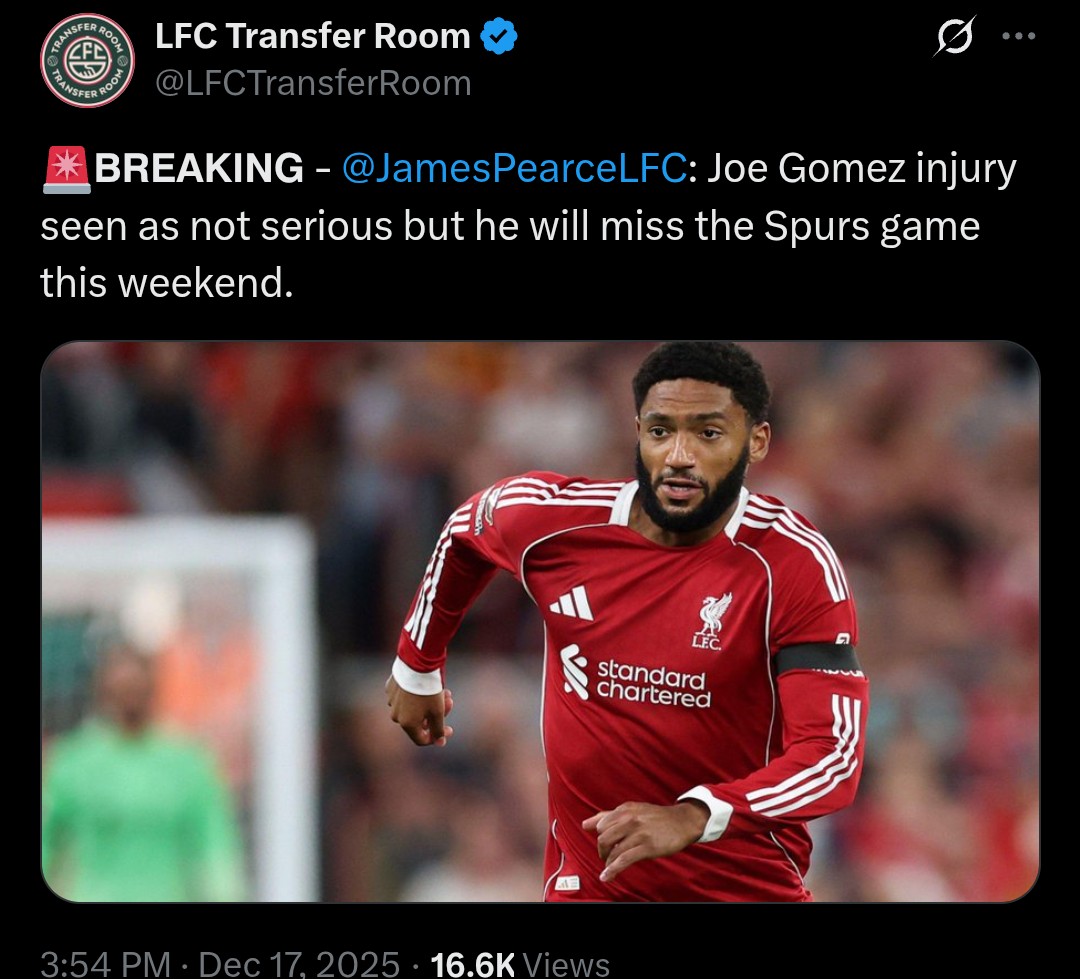 Tak było. Przepraszam, Arne. Na dodatek Gomez był w tym sezonie na ławce rezerwowych, mimo że opuszczał treningi z całą drużyną z powodu kontuzji. Jako że jest naszą jedyną alternatywą dla van Dijka i Konate, trzeba raczej odpuścić wystawianie go na prawej obronie - choć ostatnio pod nieobecność Bradleya i Frimponga granie nim tam było koniecznie.