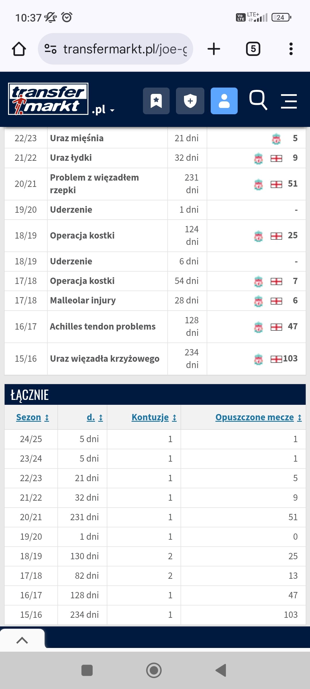 Rzeczywiście XD w ostatnich 3 sezonach opuścił 6 meczów.