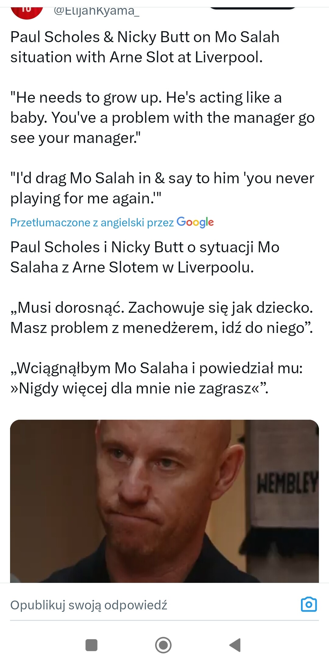 To nie do końca tak. Robertson odniósł się do taktyki, Szoboszlai wypowiedź kompletnie bez kontekstu, a Salah odniósł się wyłącznie do swojej sytuacji. Nie do sytuacji zespołu, nie do taktyki, nie do zmian jakie by widział, czy co powinno się zrobić. Wyłącznie “ja, mnie, dla mnie”. I o to jest cały szum, że Salah w obliczu kryzysu drużyny nadal patrzy egocentrycznie i nie boli go to, co się z drużyną dzieje, tylko to, że kolejny mecz siedzi na ławce i że jego agent Sherlock Holmes wywęszył spisek ze sprzedażą.