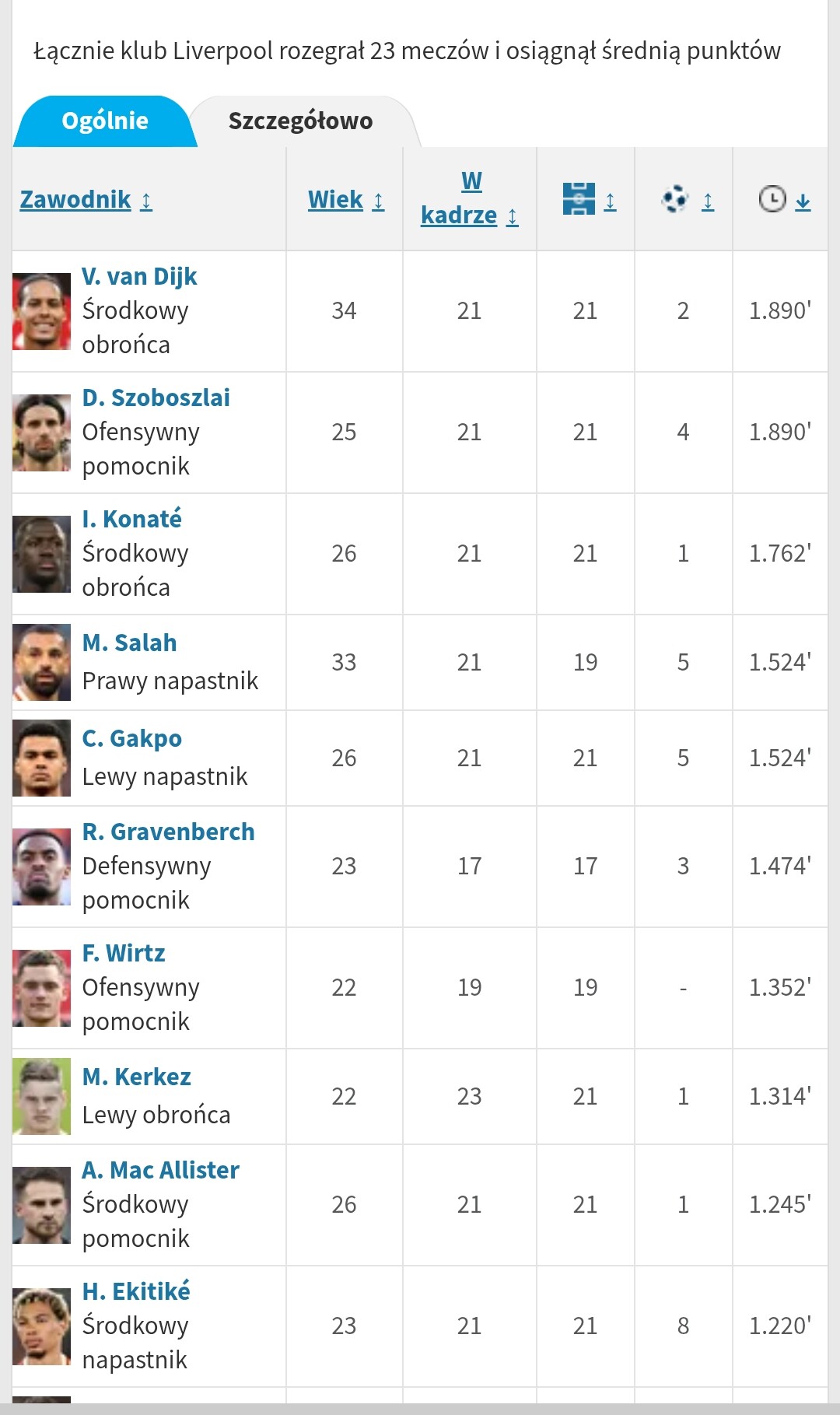 A krytykowac paru naszych graczy jest za co ,ze wymienie kilka nazwisk : Konate,van Dijk,Kerkez,Mac Allister,Jones,Wirtz,Gakpo,Isak i oczywiscie Salah.