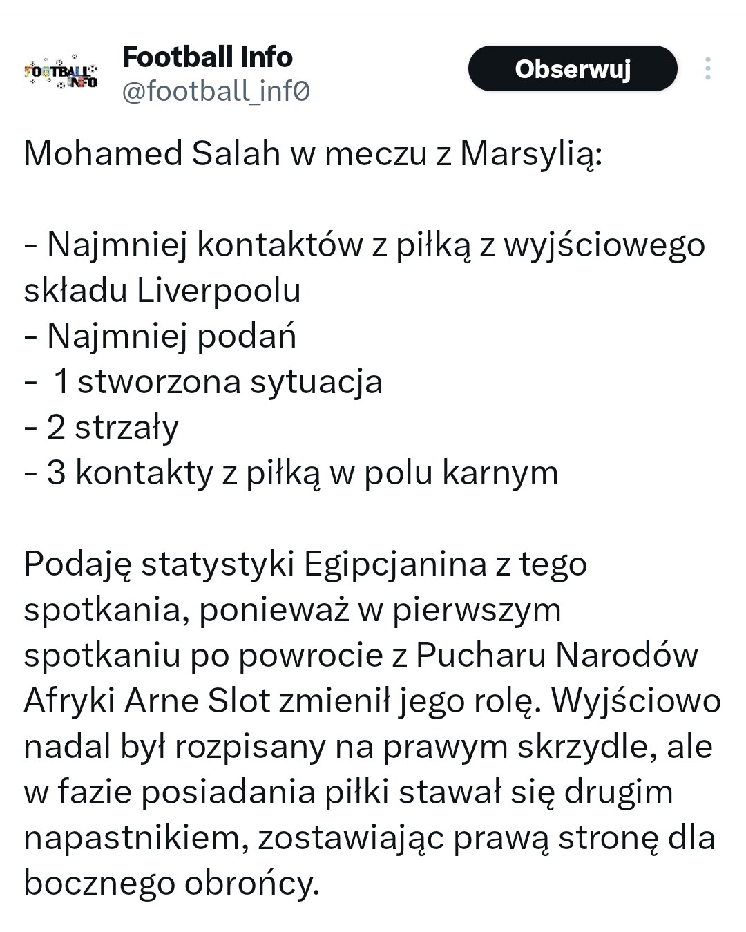 Klub od dawna dziadował na tej pozycji. Salah sam sobą zarządza na poziomie zespołu. Klopp tego nie ruszał bo byl za bardzo związany z Mo. Po przyjściu slota była okazja żeby zmienić ten stan rzeczy. Niestety to wiązało sie z transferem i postanowieniem granic. Nie jest problem nowy kontrakt ale brak realnej opcji. Jak zwykle jesteśmy spóźnieni. @Kajojojek13 ty wątpisz czy wróci Salah jeszcze w sierpniu powtarzałeś ze nie ma sensu nikog szukać bo egipcjanin to profesjonalista i da radę zagrać 50 spotkań w sezonie