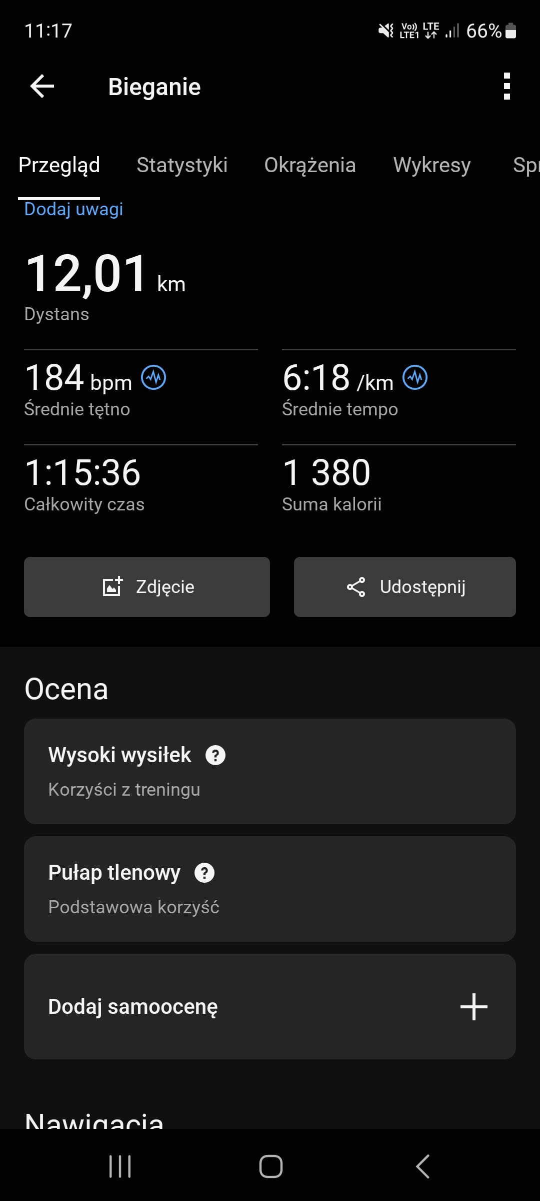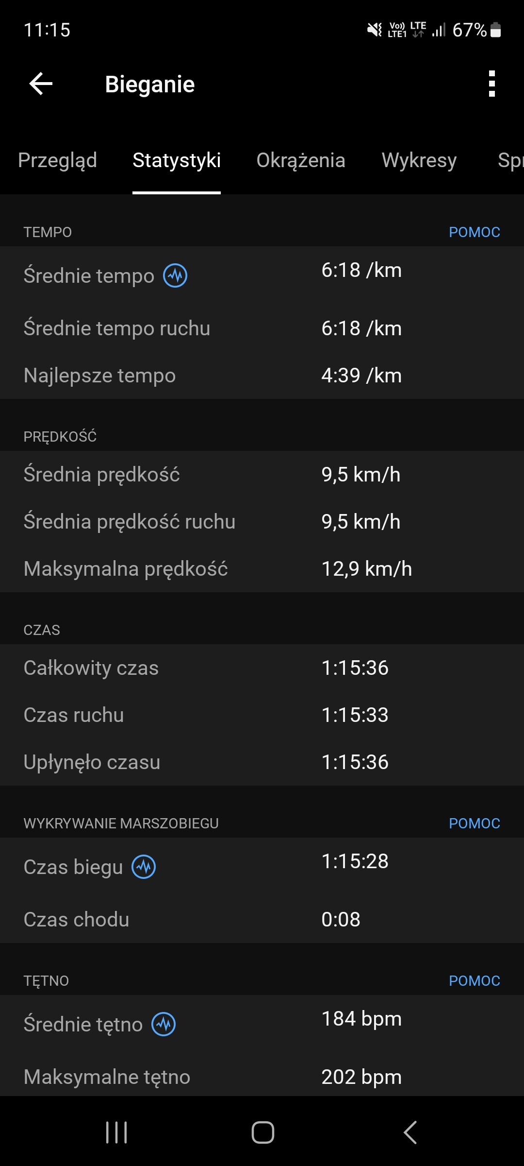 Aplikacja garmin connect - wszystko pokazuje, szybko przenosi dane z zegarka do apki na telefon, dokladne dane przykład: