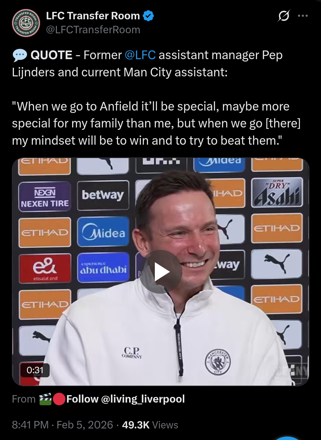 Już mniejsza o to, że poszedł ssać pęto Pepa, ale sposób w jaki wypowiada się o Anfield. Mi to się nie podoba.