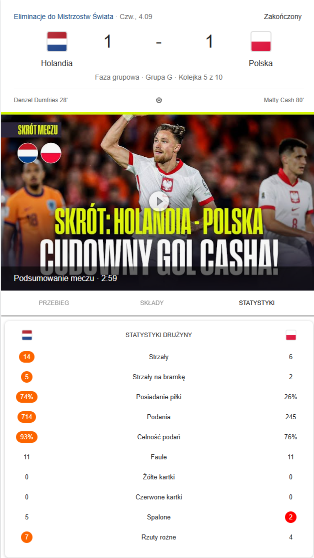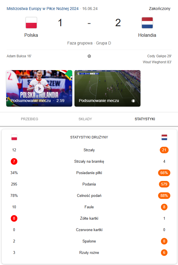 Tak serio to masz krótką pamięć. Za Probierza Polska zagrała przyzwoite zawody w fazie grupowej Euro 2024. Remisowaliśmy z Francją i zagraliśmy znacznie lepsze spotkanie z Holendrami przegrywając 1:2 niż ostatnio. Nie muszę tego oglądać, żeby stwierdzić, że co niektórzy macie zasłonięte klapki na oczach.