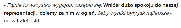 W stosunku do tego gówna, które serwował nam Probierz w nieskończoność szukający odpowiednich zawodników do swojej bezjajecznej taktyki, powiedziałbym że to jest wręcz wybudzenie ze śpiączki w jaką popadliśmy za poprzedniego wuefisty.