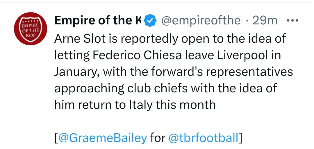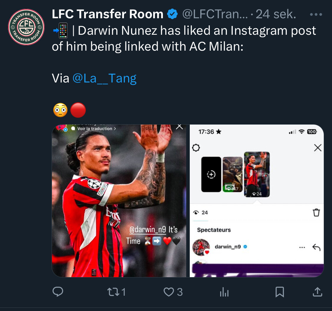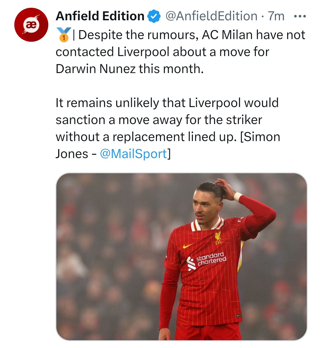Też widziałem takie plotki, wypożyczenie Darwina do końca sezonu nie byłoby głupie, ale wówczas warto byłoby pomyśleć o kimś w jego miejsce. Jednak co by nie mówić o Nunezie to zdrowie chłopak ma, a bez niego warianty w ofensywie trochę się nam zmniejszają, szczególnie patrząc na przydatność Chiesy i tradycyjne obawy o zdrowie Joty.