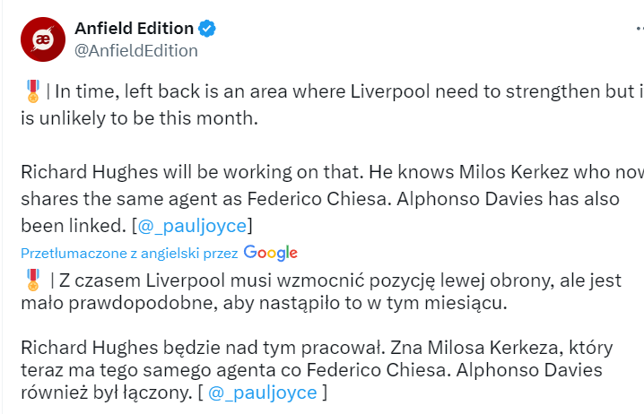 To czego się najbardziej obawiam, to że Real zacznie naciskać na Trenta, żeby złożył TR i wymusił transfer do Realu. Będą używali argumentów, że potrzebują RB na już i jak nie on to Romero czy ktoś inny i ma się decydować, bo do lata nie będą czekać.