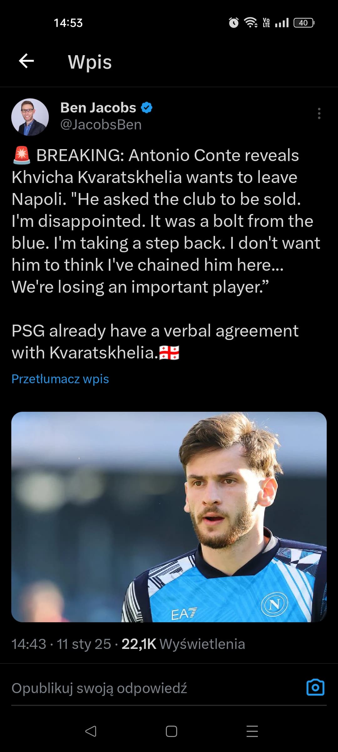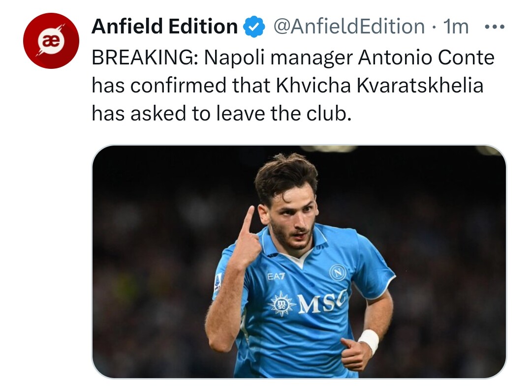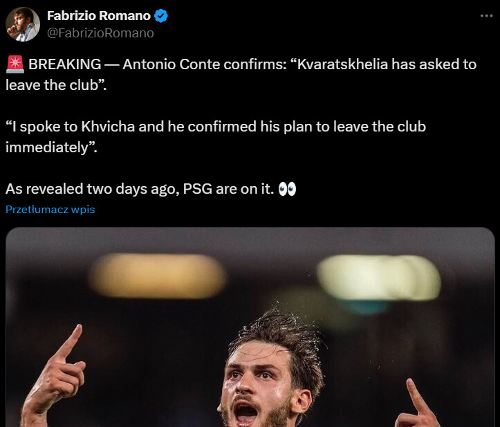 Kvara już jest dogadany z PSG od lata ale go nie chcieli puścić. Ale jak chcecie to możecie się łudzić dalej.