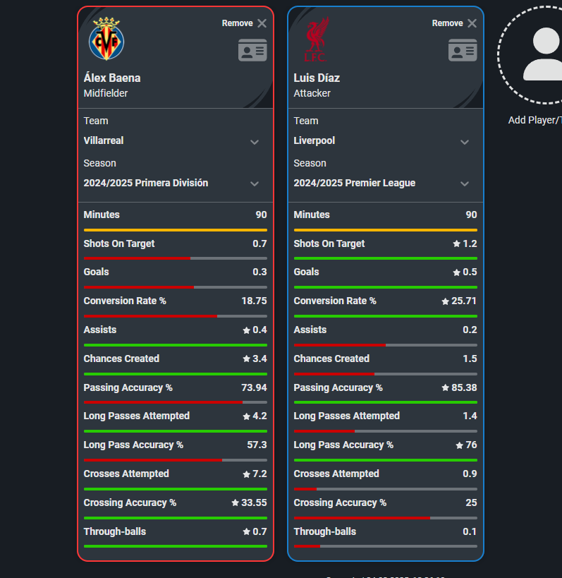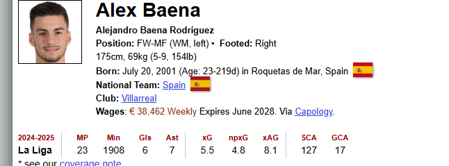na oko i ze statystyk wynika, że jest znacznie bardziej kreatywnym zawodnikiem. Gra w raczej defensywnie usposobionym Villareal, to strzałów i bramek za wiele nie ma. JEdnak tworzone okazje i asysty dwukrotnie więcej niż Diaz.