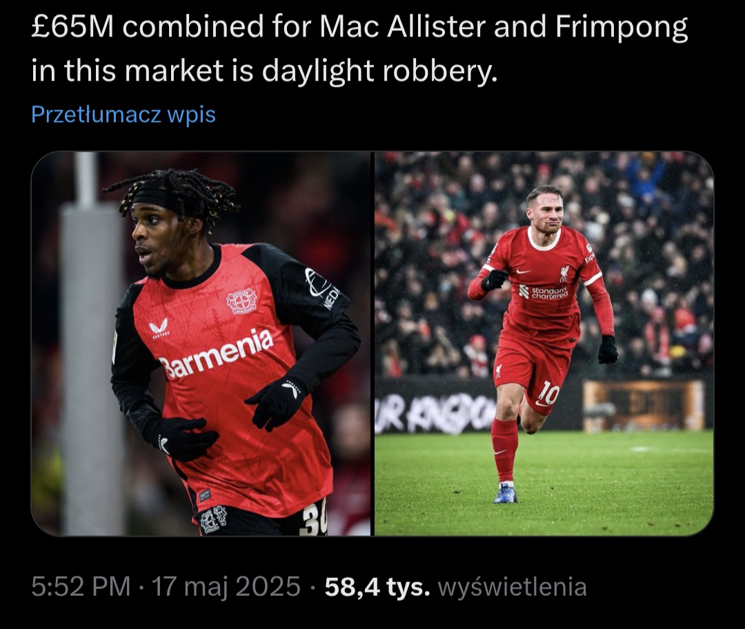 Zawodnik idący do Liverpoolu z takiego klubu powinien być chociaż wyróżniający się, a on przykładowo z Valencią to grał jak dziecko we mgle. Sprzedać jak ktoś da te 5mln i co najwyżej zostawić spory % odsprzedaży (bo odkupu nie trzeba, tu nie widzę potencjału). Już wolałbym zaryzykować z Jobe Bellinghamem, bo to kocur był w Championship i to mimo tego, że końcówka sezonu ligowego dużo słabsza. Jeśli to prawda, że BVB kręci się wokół niego za 30mln, to przechwycałbym jak mentzeniak wyborców nawrockiego XD