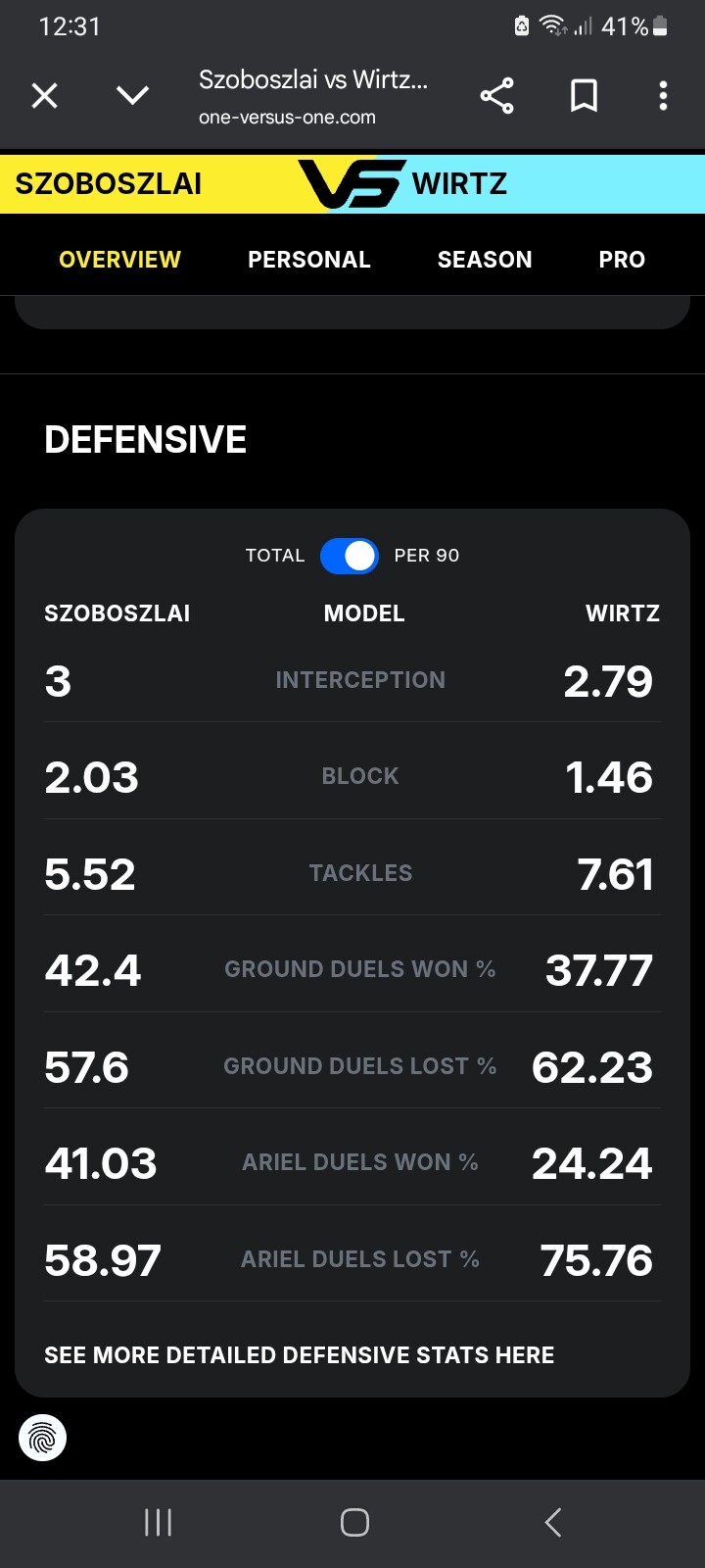 Wielu ludzi tutaj powiela nieprawdę jakoby Wirtz był słaby w defensywie, pamiętam że ktoś z forum kiedyś wrzucał grafikę wg której Wirtz był najlepiej pressującym zawodnikiem w ligach top5, nie pamietam szczegolów tych statystyk, czy chodzilo o doskoki pressingowe, wyprowadzanie pilki pod pressingiem, odbiory po pressingu czy o coś innego ale utkwiło mi to w pamięci.