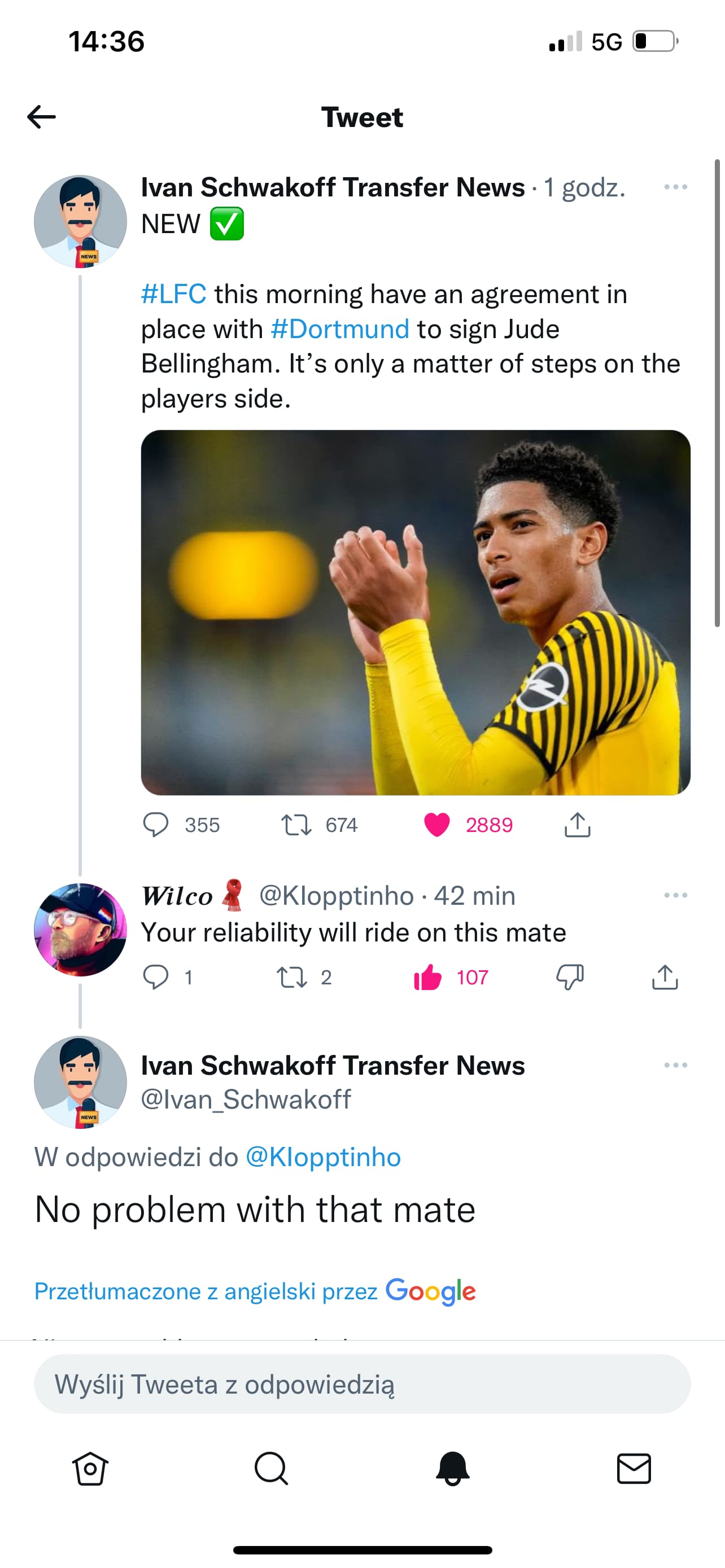 Każdy ma swoje zdanie, ja już pisałem dawno, tego lub następnego lata Jude Bellingham trafi do Liverpoolu. Stawiam na transfer tego lata z pozostaniem jeszcze na rok w BVB