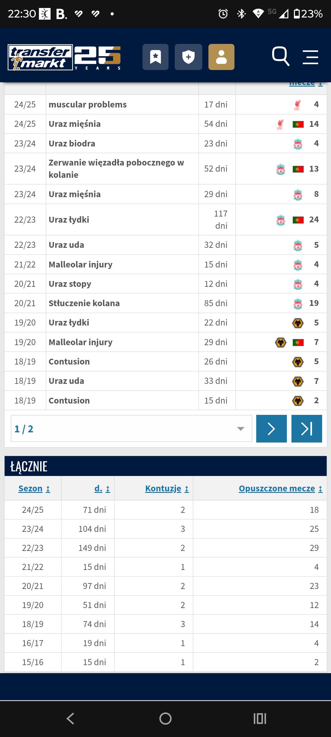 Dla porównania historia kontuzji Joty: