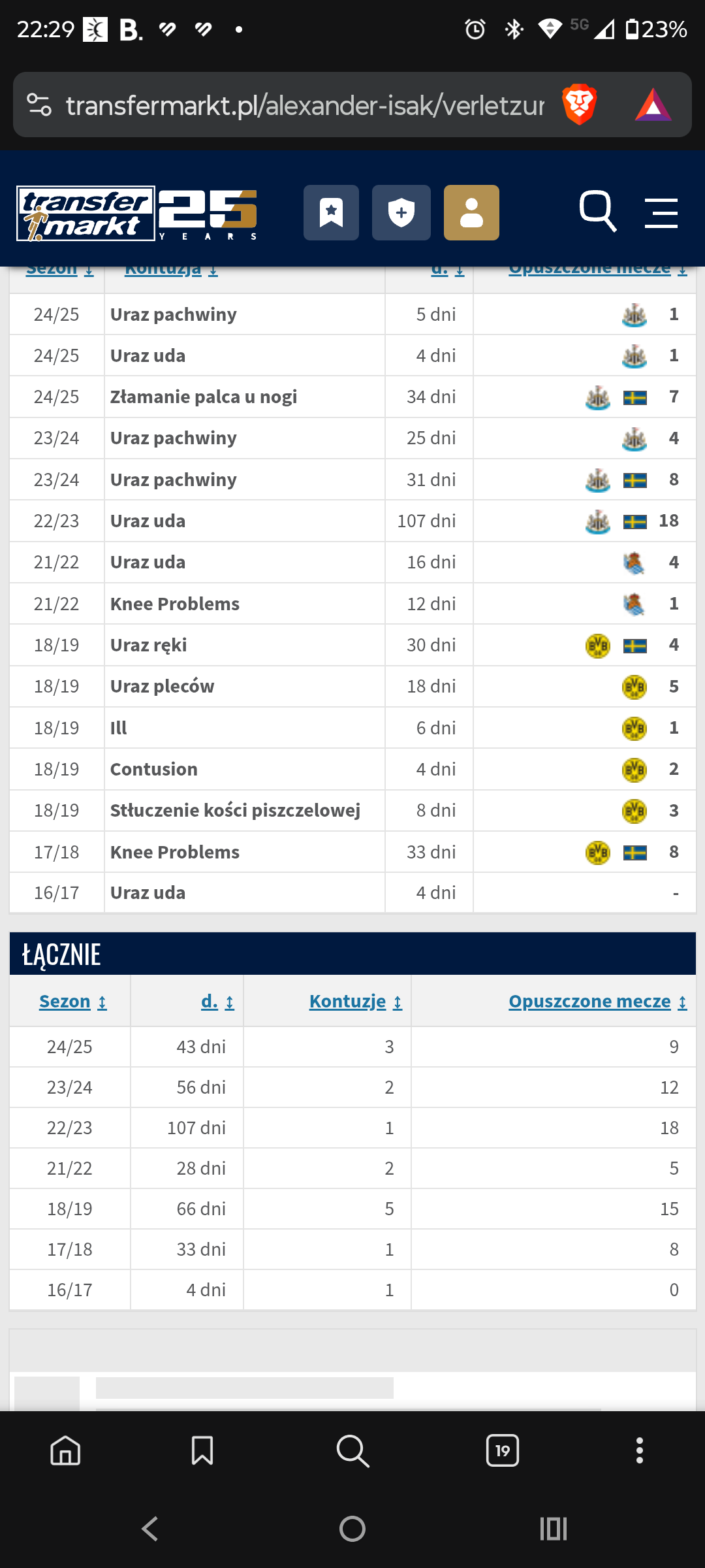 Tylko w pierwszym sezonie Isak byl mocno awaryjny. Kolejne dwa to juz prawie gra od dechy do dechy. Co najmniej 2500 minut zaliczone w ostatnich dwoch sezonach PL, a i tak bysmy go oszczedzali co pewien czas i dawali pograc np. Jocie. On jest dosc zdrowy i mozna go brac.