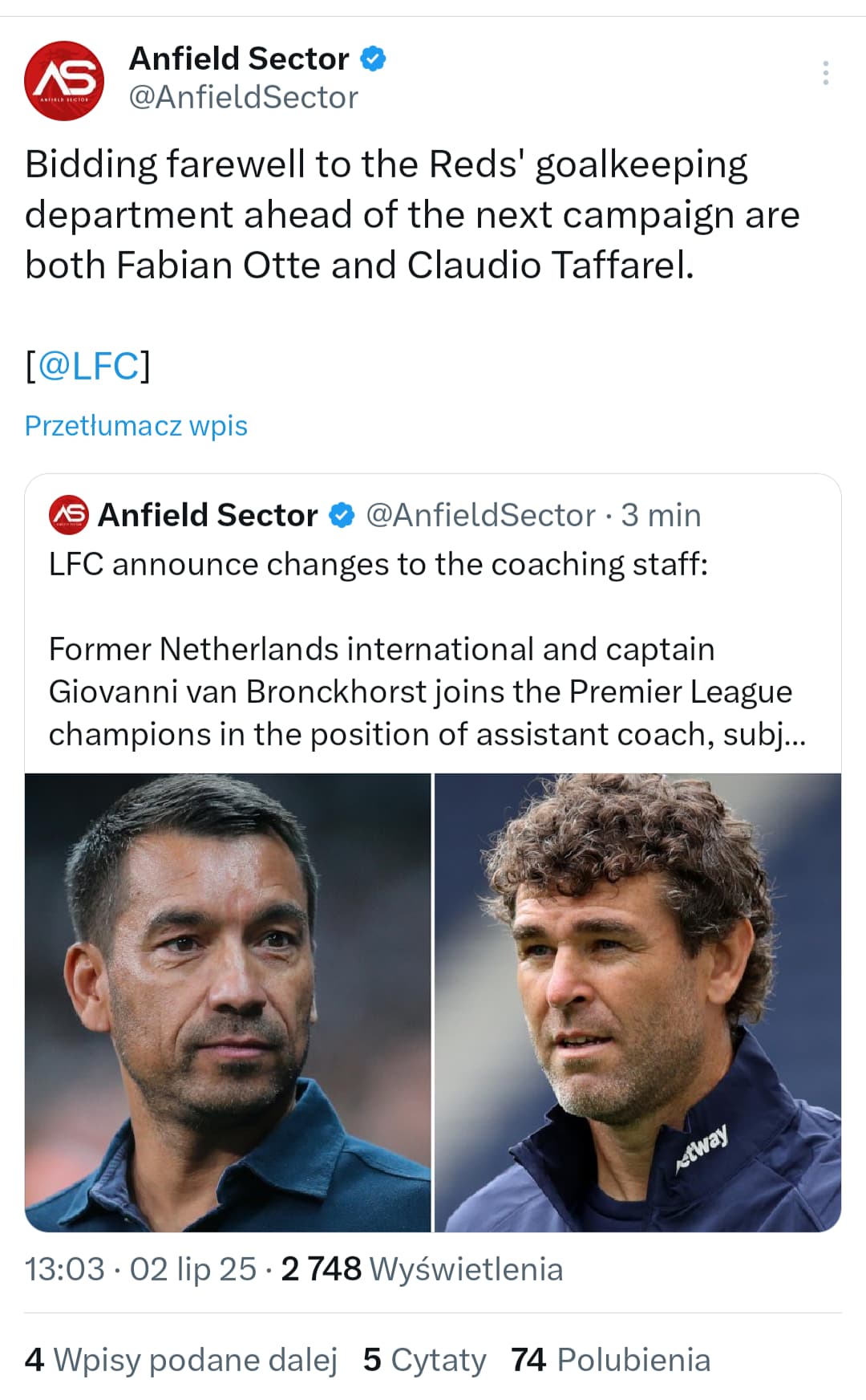 Wydaje mi się, że odnosi się do transferu na pozycję 9, zdecydowaliśmy i przyjdzie Hugo Ekitike ![]()