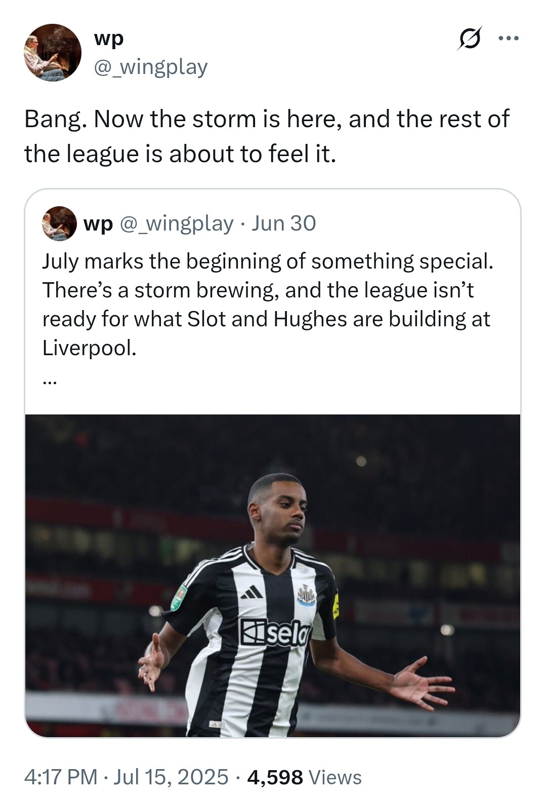 moim zdaniem Newcastle bardzo się boi o Isaka plotki o Ekitike i,że nibye będą grać we dwóch by zachęcić Szweda i odstraszyć nas ale mysle że nasi kontaktowali sie z zawodnikiem bo jakby nie to na co te podchody