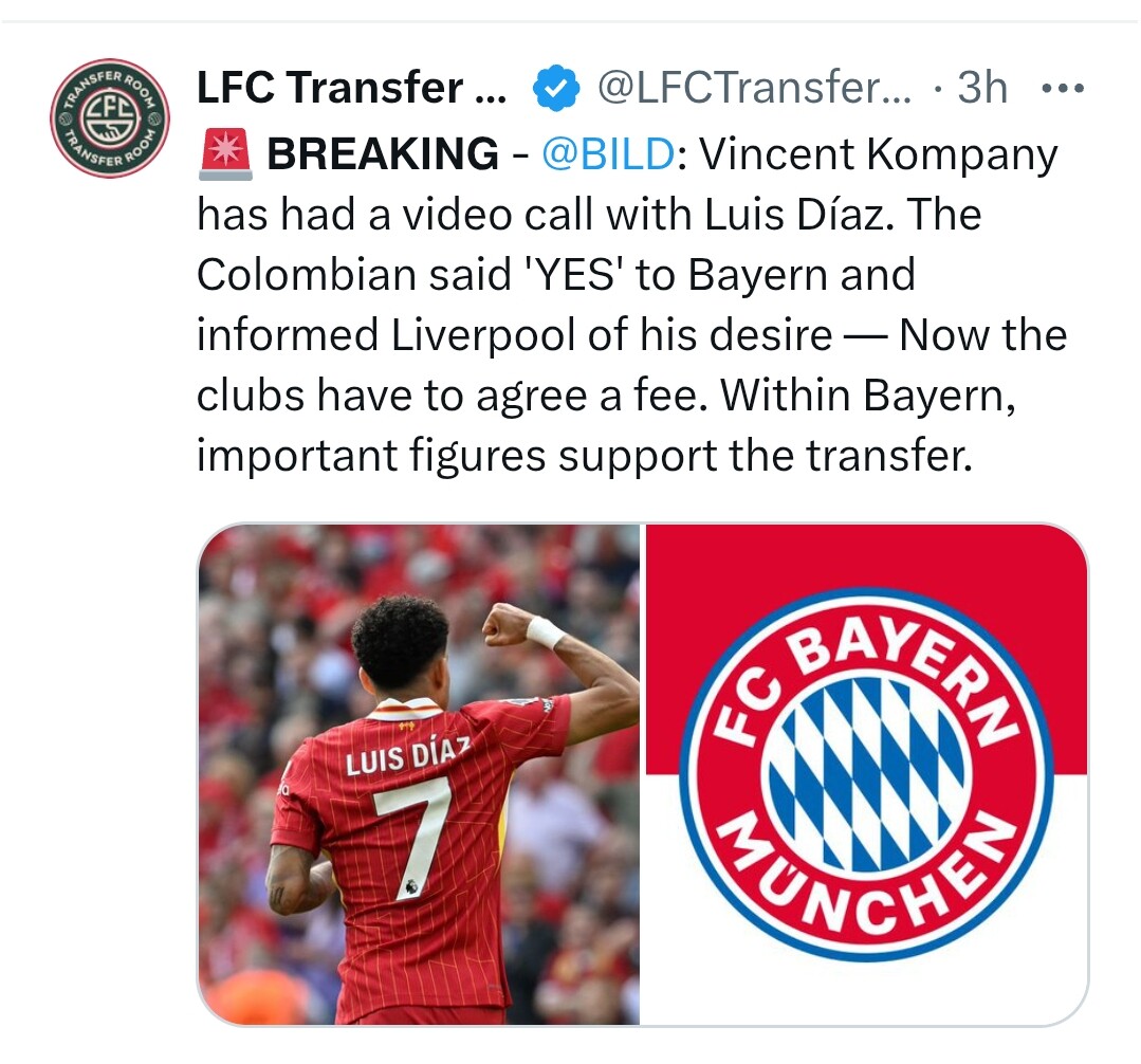 O rany, myślałem że Wirtz to już grubo i sądziłem że jednak na Ekitike się skupimy, ale jak rekord klubowy/ligowy pobijemy 2x w ciągu jednego okienka, to się złapię za głowę, a do tego 1:1 wymiana Diaz/Rodrygo to w ogóle byłby orgazm. Problemem może być rezerwowy dla Isaka, ale kto wie co by chcieli jeszcze nasi włodarze ugotować, poza tym Chiesa mi się podobał na szpicy w tym bodaj JEDNYM