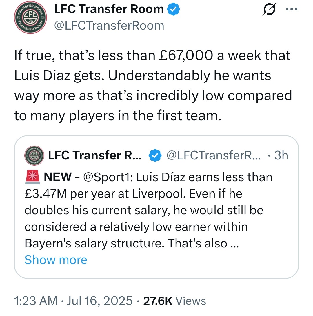 Ktoś to zdementował na początku okienka twierdząc że Luis zarabia 140k/week. Nie wiadomo co jest prawdą.