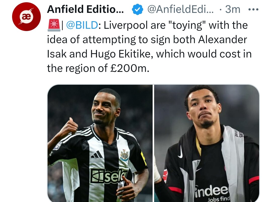 Żebyśmy nie zostali bez Isaka i bez Ekitike bo ciężko to będzie przełknąć.