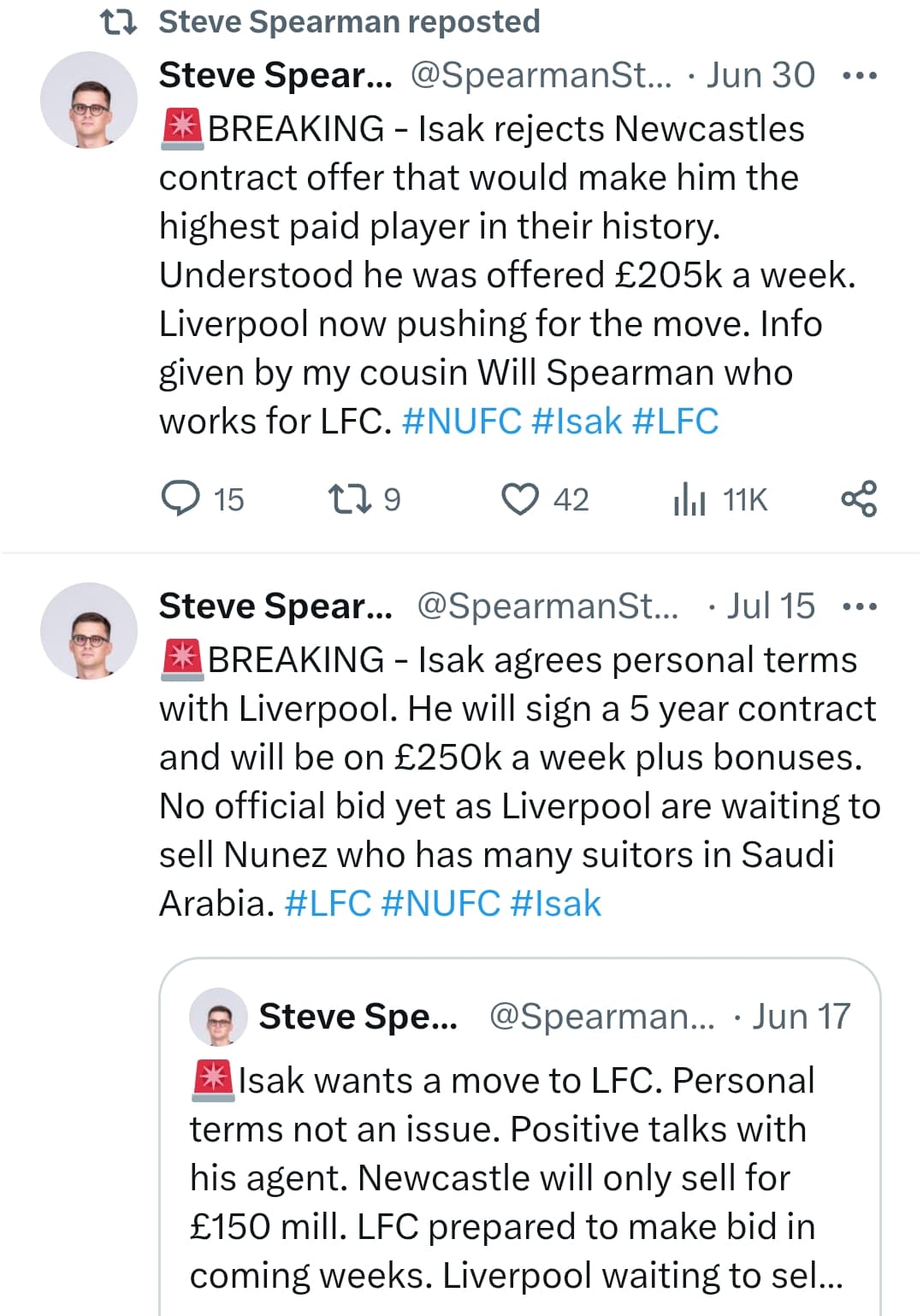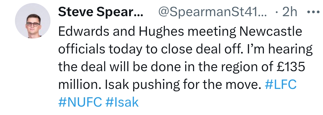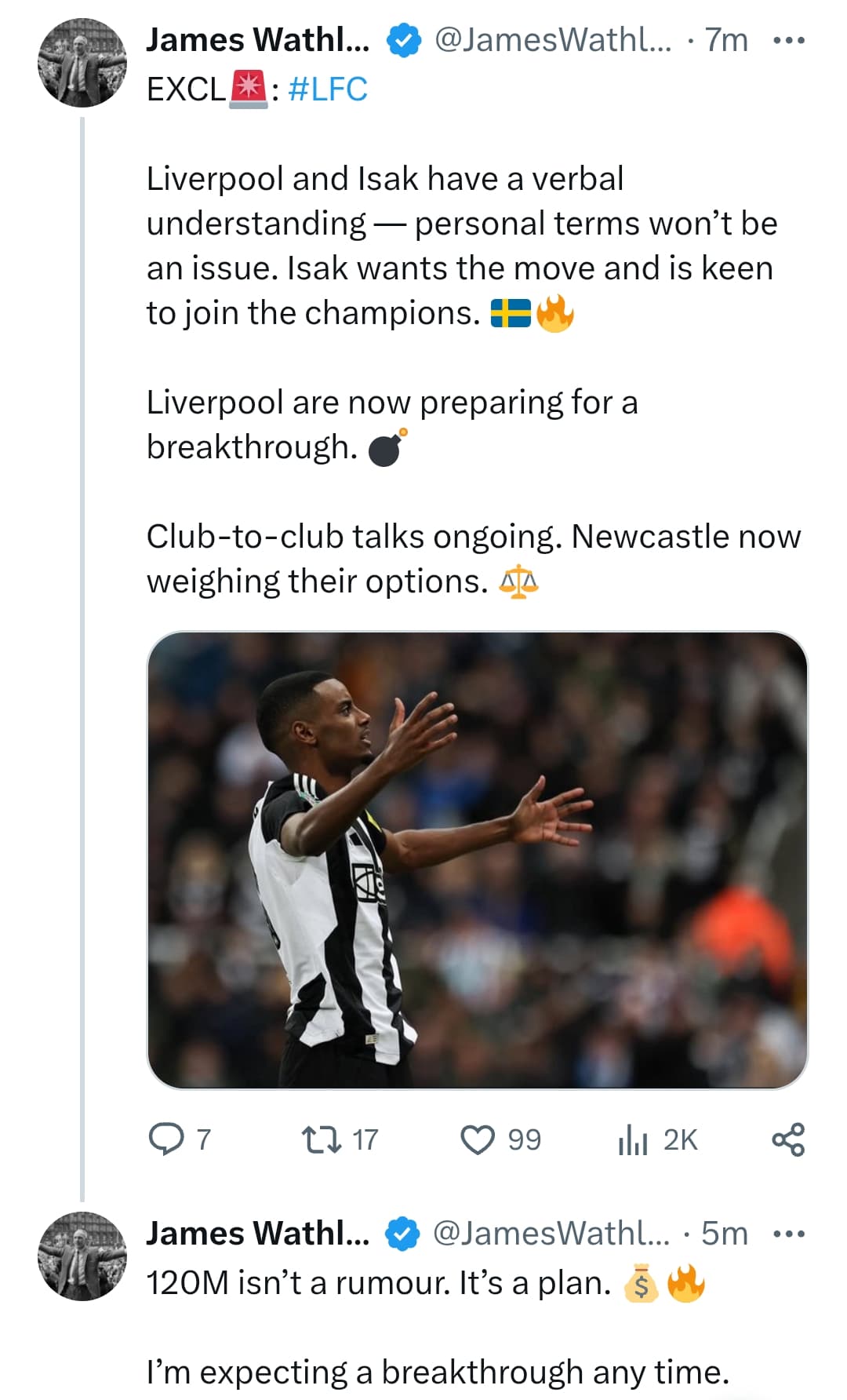 Isak niczego nie zdobędzie w obecnym Newcastle, a zanim oni wygrają LM czy tam PL to on już będzie kończył karierę w jakimś arabskim klubie. Teraz ma najlepsze lata przed sobą, 6-7, może 8 lat walki o wszystko, wyznaczenie jego całej ścieżki kariery. W Newcastle szkoda tracić czas, zrobił tam co miał zrobić, wyszedł z drużyną na prostą, stali się top 4 w lidze, to jest ich max obecnie.
