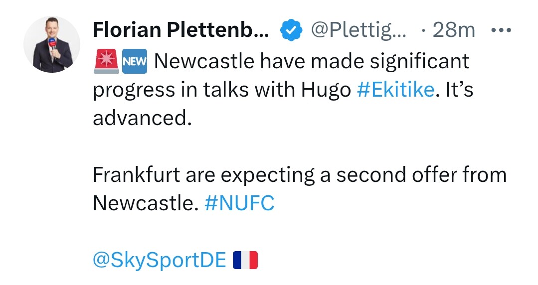 Ekitike nie jest wart więcej niż 60 melonów euro, a podobno już większą oferta przez Newcastle została odrzucona.