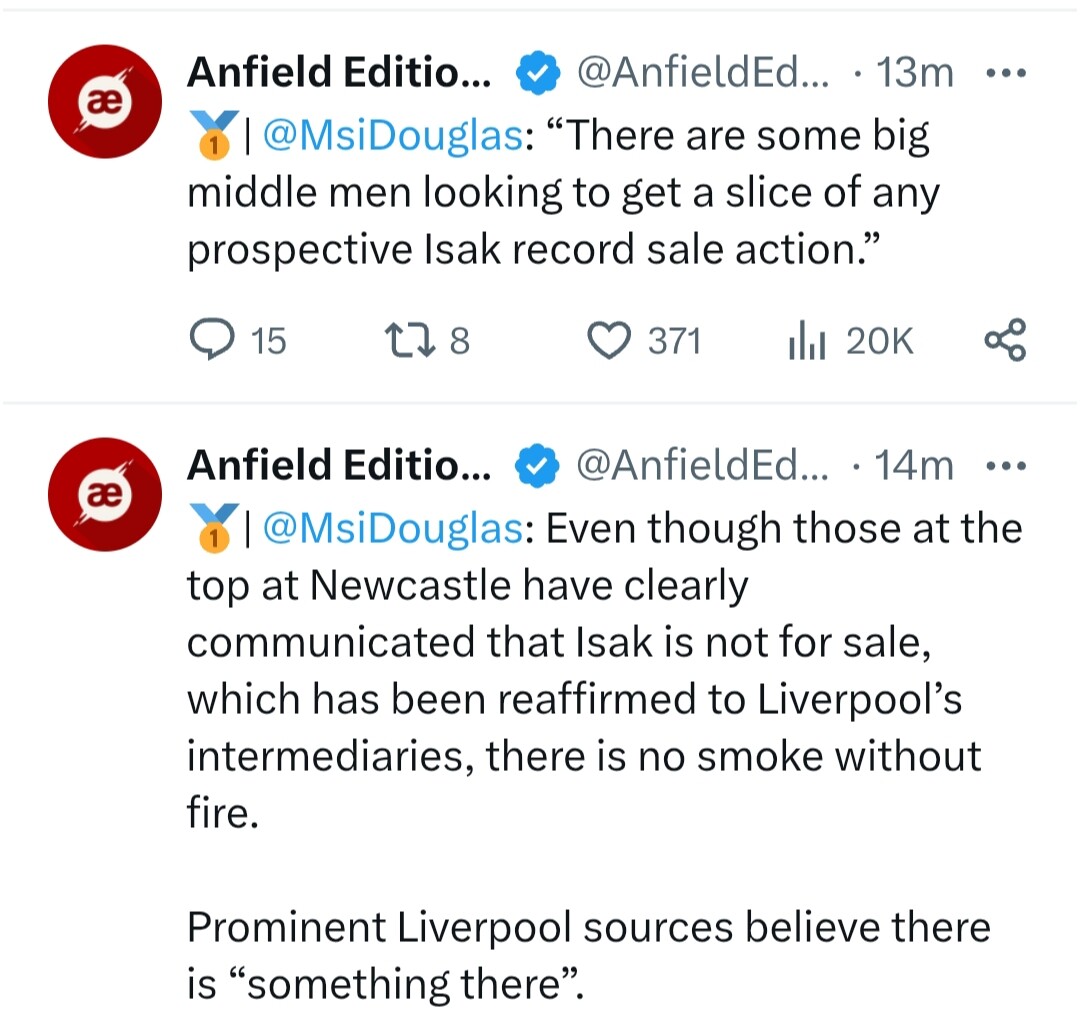 Kiedy wylatujemy do Azji? Myślę że do tego czasu sprawa się wyjaśni. Wszystko zależy jak bardzo Isak chce dołączyć do LFC i jak bardzo będzie naciskał na Newcastle. Skoro klub nastawił się na Isaka to finanse nie będą stanowić problemu, co widzieliśmy w przypadku Wirtza.
