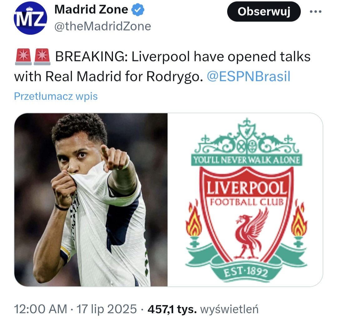 Przecież właśnie o to chodzi Liverpolowi - poczynić postępy w sprawie Ekitike, wyprzedzić w tym wyścigu Newcastle żeby im pokazać, że jeśli nie sprzedadzą nam Isaka, to nie dostaną Ekitike. Czekamy. Nadal szanse na Isaka są niewielkie, ale wciąż można się łudzić.
