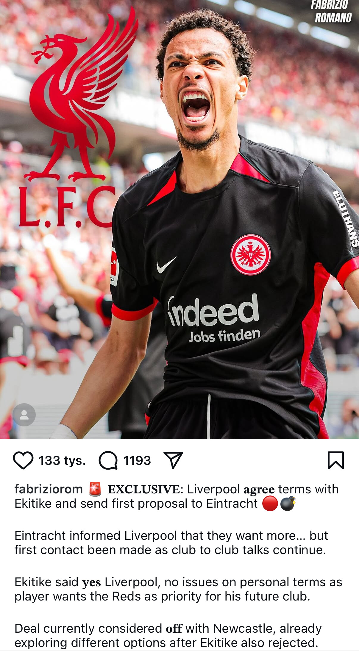 To była prowizorka z tym ich wykładaniem pieniędzy. Ekitike nie był im potrzebny w przypadku pozostania Isaka.
