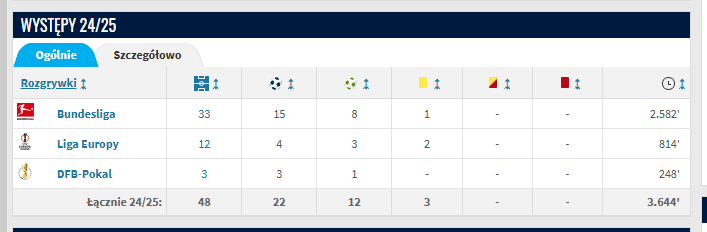 Tylko jednego liczby podajesz ze wszytkich rozgrywek, drugiego tylko z ligi, więc tak podając wszystko rzetelnie to masz